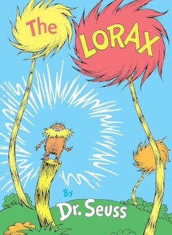The Lorax is a story about greed and self control. A boy who was living in a poor area goes to an old man called the “Onceler” and exchanges items for a story. The story is about the Onceler when he was young, and he started a business of cutting down trees in the area to sell “Thneeds”. This business grew large quickly, and many “Thneeds” were being made for money until all of the trees were chopped down. The Lorax, who is an orange tree-defender, was actively trying to prevent this. Finally, when the final tree was cut down (rendering the species extinct), the Lorax leaves a message: UNLESS and ascends to the clouds. The Onceler pondered it for years, but understood what it meant at that moment and gave the boy listening the last Truffula seed, who then proceeded to grow it to bring back the species.