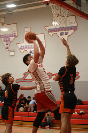 Ponder Jr high basketball had a tournament this week. First the B team won all 3 of their games. They beat Krum 49 to 15 then they beat HSAA and then they beat Celina. Logen did the best in the first game. They kept leaving him unguarded so he got easy layups. Dax in the 2nd game scored his first 3 of the season after working so hard to score it. Mason Garcia did good at fighting for the ball. The third game they were not doing good in the first half but then stepped it up and ended up winning.